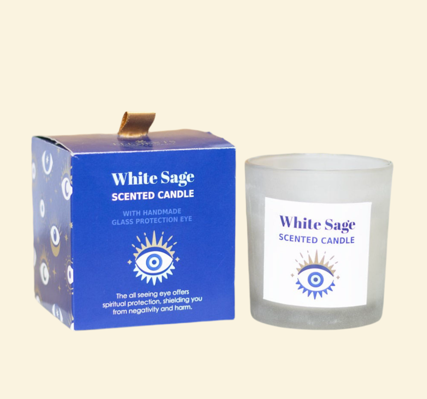 Enhance your luck and protection with our curated box. Featuring an all seeing eye mug, glass charm, enamel keyring, and crystal charm white sage scented candle, soft touch fur/satin sleep mask, and large detox bath bomb. Feel the benefits of these items as they bring positivity and balance to your life.
