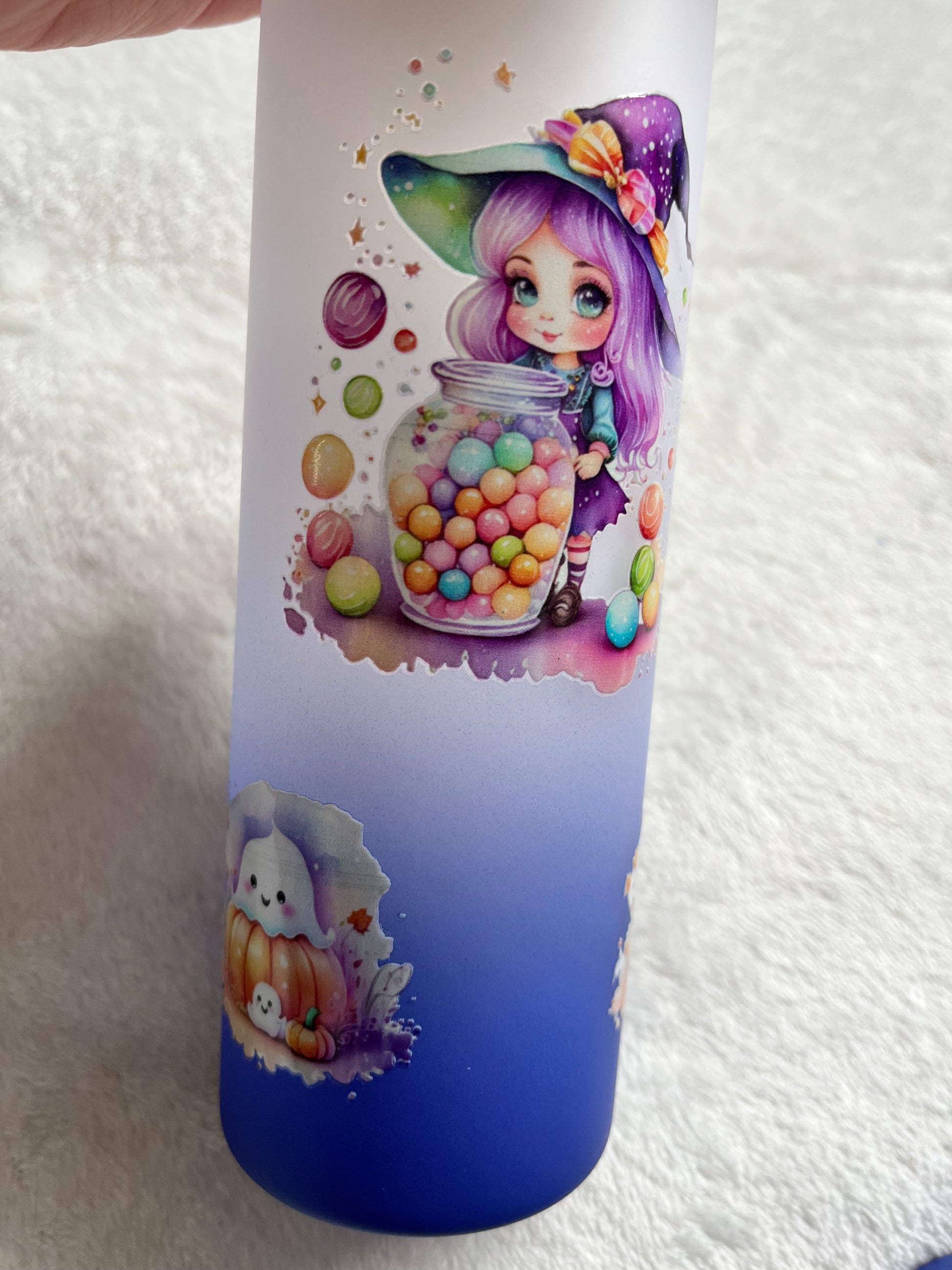 These Halloween Frosted Glass Tumblers/Mugs blend spooky charm with sleek style. Featuring a captivating ombre effect, each tumbler comes with a bamboo lid and a reusable plastic straw, perfect for your eerie autumn sips. Limited to just 1 of each design remaining—grab yours before they vanish into the night.