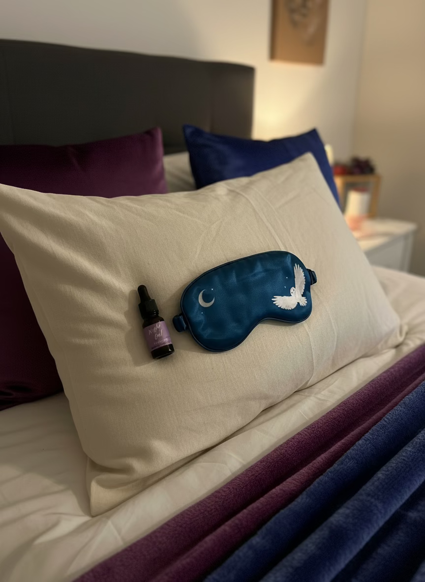 Unwind and destress with our Peaceful Moments Relaxing Bundle. Get cozy with our satin sleep mask and soothing lavender candle. Increase focus with our night owl journal and sodalite pen. Stay hydrated with our night owl metal water bottle. Finally, take some relaxation on the go with our lavender essential oil and owl keyring.